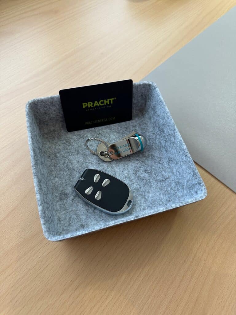 Im Apartment, auf dem Schreibtisch in einem grauen Kästchen, finden Sie die Fernbedienung für die Kettenschranke des Garagenhofs. Der Knopf oben links ist zum herunter- und anschließend wieder herauf fahren. Die Kettenschranke kann ohne Fernbedienung nicht gesteuert werden!